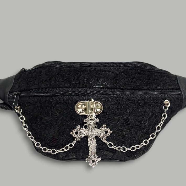 Monedero grande hecho en charol con bordado de telaraña y un corazón central de charol.