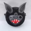 Cartera cara de murciélago, hecha en ecocuero con pelo sintético con detalles bordados individualmente.