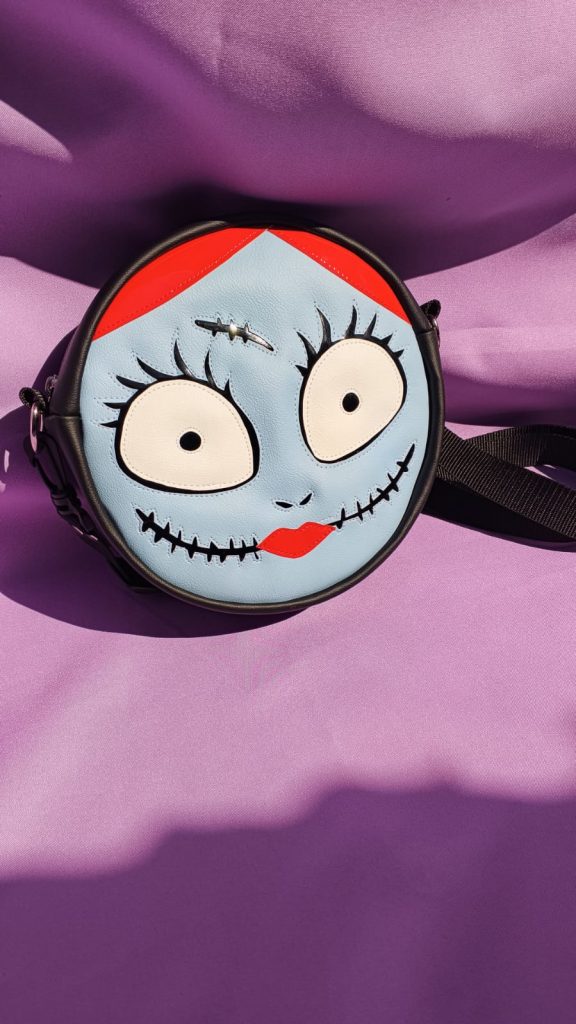 Cartera inspirada en Sally , la eterna enamorada de Jack en el clásico del cine the nightmare before christmas, hecho en ecocuero y detalles de la cara en charol negro cuidadosamente cosido individualmente.