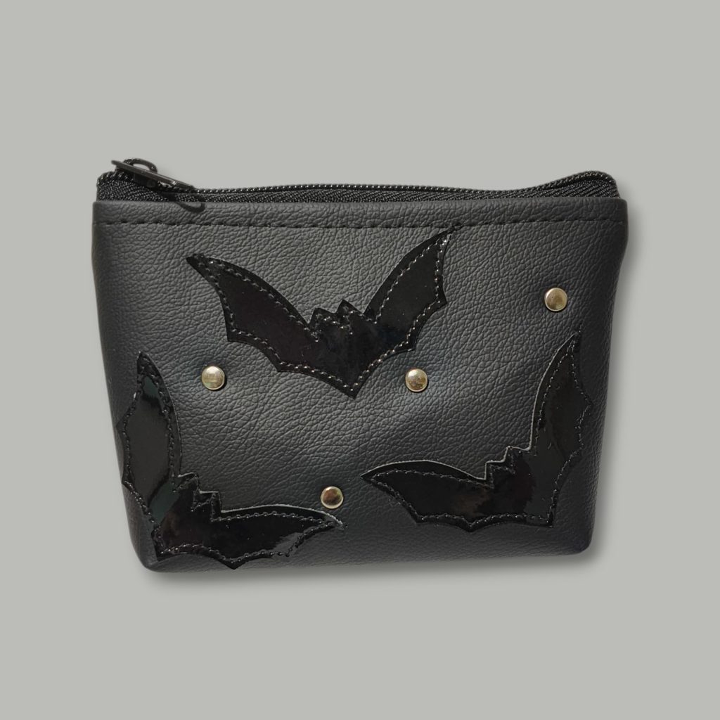 Monedero grande hecho en ecocuero con murciélagos de charol.